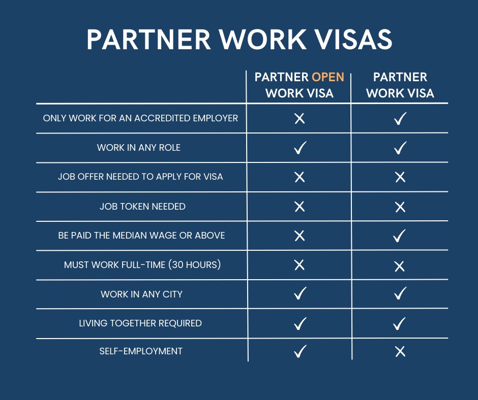 - They cannot be self-employed (for example, drive an Uber), whereas Partner Open Work Visa holders can.